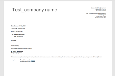 - Patient copy added to CC in letter:
