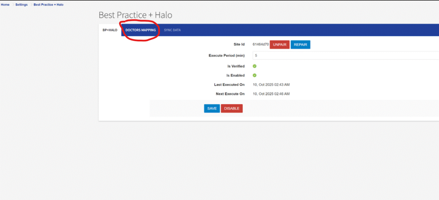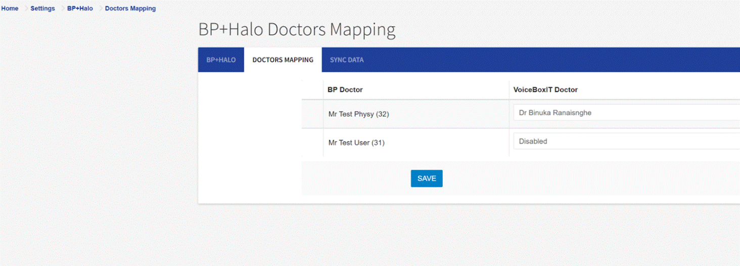 - Click on the Doctors mapping tab in VoiceBox BP settings